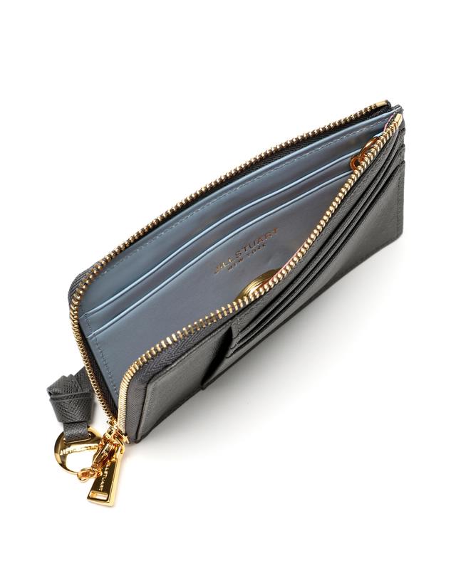 심플한 소가죽 바탕에 골드 로고와 참 장식으로 포인트를 준 동전지갑 형 카드지갑 입니다.