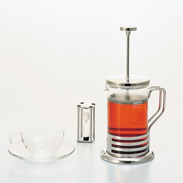 プレス式ティーメーカー。紅茶はもちろん、ハーブティーなどお茶の種類を選びません。茶葉を入れてお湯を注ぎフィルターを押し下げるタイプのプレス式ティーメーカーです。ガラス部は取り外しが出来るのでいつまでも清潔にご使用いただけます。プレゼントやギフトにもおすすめ。