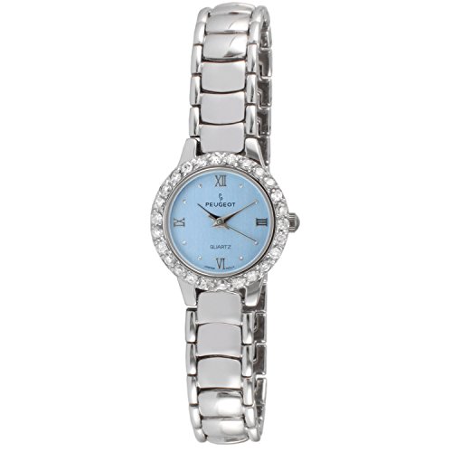 Peugeot Women's Round Silver-Tone Crystal Bezel Bracelet Watch
