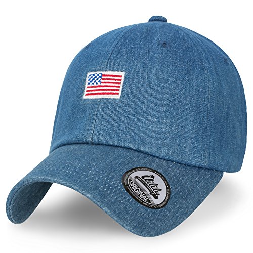 -. Title : ililily USA Flag Embroidery Denim Cotton Baseball Cap Casual Trucker Hat