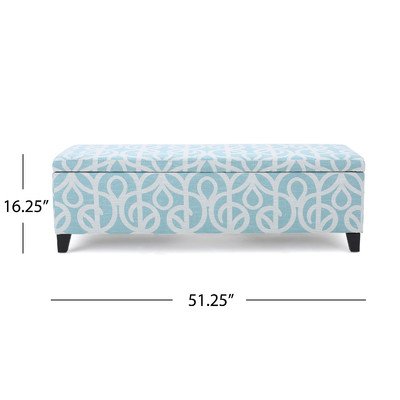 -. Brand : Charlton Home -. Color : Blue, White -. EAN : 0747719875450 -. Feature : Additional storage / Easy to clean / Can be used as extra seating / Adair collection / Design: Standard, Shape: Rectangle -. Model : CHLH8363 -. MPN : CHLH8363 -. PartNumber : CHLH8363 -. ProductGroup : Furniture -. ProductTypeName : HOME_FURNITURE_AND_DECOR -. Title : Upholstered Bedroom Storage Bench Rectangular Shape (Upholstery Color) Blue/White (Leg Finish) Black 16'' H x 51'' W x 17'' D in. -. UPC : 747719875450