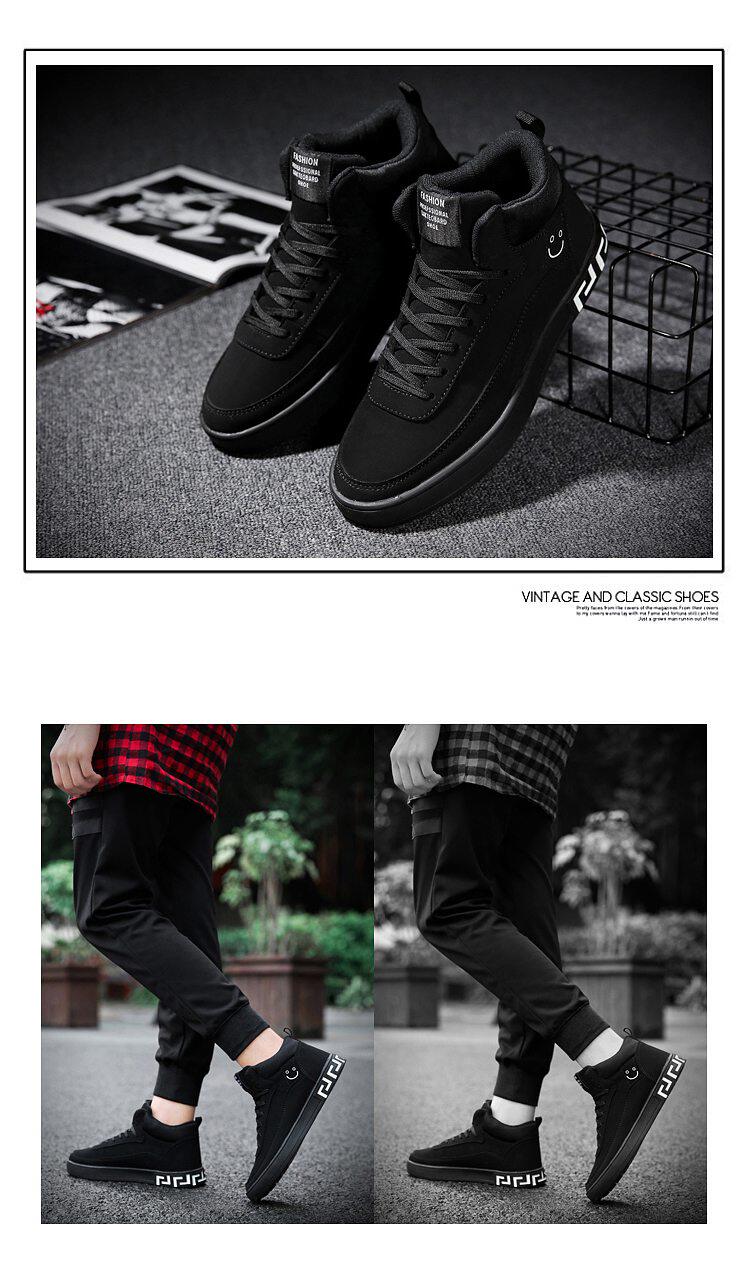 秋冬男鞋子青少年户外运动休闲鞋韩版高帮板鞋磨砂短靴篮球鞋潮鞋