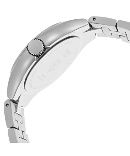 Clean and classic with a lustrous stainless steel design in modest size, this T-12 timepiece from the renowned Tissot is a must-have addition to any woman's wardrobe. Its textured, silver-tone dial with a simple display makes this the ideal accessory to add a dash of elegance to a blazer and jeans for casual Friday or a peplum top and pencil skirt for a day full of meetings. This website is an authorized reseller of Tissot and each piece comes with the manufacturer warranty.Feature