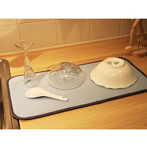 Studio : Haifu Publisher : Haifu Product Description The Kitchen Basics Dish Drying Mat is the new solution to the age old tradition of placing dish towels on the counter when hand-washing pots, pans, dishes and glassware. It features a center layer of foam that is fused to revolutionary, super-absorbent microfiber fabric using our proprietary manufacturing process. This process yields a mat that is highly functional and incredibly durable, use after use, wash after wash. By combining an optimal foam thickness with terry microfiber fabric, water quickly radiates from the point of contact, enhancing absorption and quickening drying time. You will be amazed by the effectiveness and convenience of this deceptively simple item! The Kitchen Basics Dish Drying Mat is perfect for use underneath a dish rack to catch drips or you can place pots, pans and glassware directly on the mat. You can even set it under small appliances to protect your counter from scratches and scuffs. Available in multiple colors and patterns, the Kitchen Basics Dish Drying Mat will compliment your personal design. The Kitchen Basics Dish Drying Mat is our most economical solution for drip drying dishes. Caring for your Dish Drying Mat is easy; simply toss it in the washing machine with cold water and a liquid detergent and then place in the dryer on a low heat setting. 0