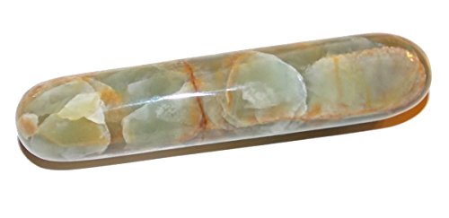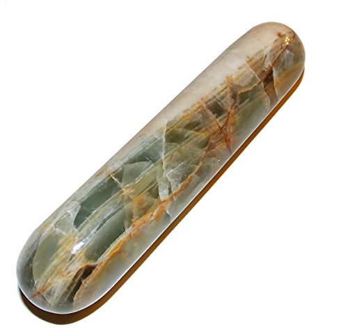 (SunnyCrystals)/Wellness Relaxation/Massage Tools Equipment/DIRECT FROM USA/Calcite Smooth Massage Wand 02 Green Yellow Heart Solar Plexus Energy Healing Crystals 4.8"