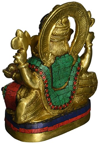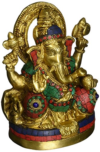 Large Ganesh Idol - Brass Statues with Gemstones Works - Hindu Goodluck God Lord of Prosperity & Fortune Sculptures