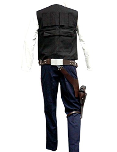 -. Brand : thecostumebase -. Color : Mix -. Department : unisex-adult -. Feature : White long sleeve collar shirt made of Cotton / Gunbelt with pouches for holding mechanical stuffs and a U-clutch for holding droid caller. Belt is also attach with holster for holding blaster. / Black Vest made of Cotton/Polyester. The droid caller (New Version) / Free Shipping / Navy Blue w/ Red Straps Pants (With Belt Loops and Zipper) made of Cotton/Polyester -. PackageQuantity : 1 -. ProductGroup : Apparel -. ProductTypeName : ADULT_COSTUME -. Title : Star Wars Han Solo ANH Full Costume Belt Holster Droid Caller Set