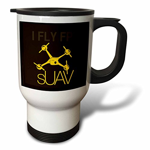 3dRose tm_179959_1 Black and Yellow Drone with I Fly Fpv Phrase Stainless Steel Travel Mug, 14-Ounce