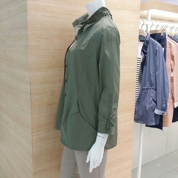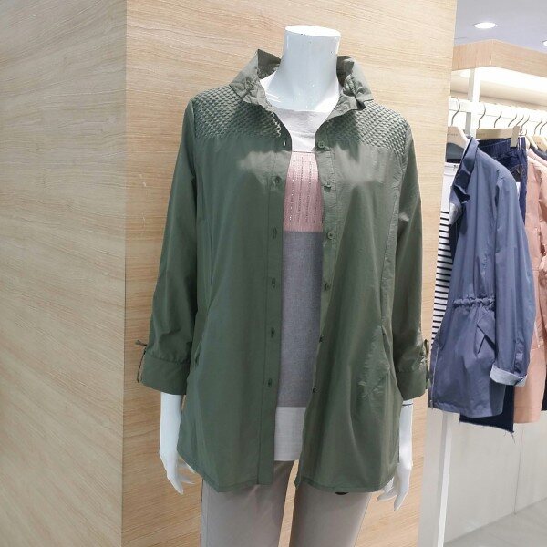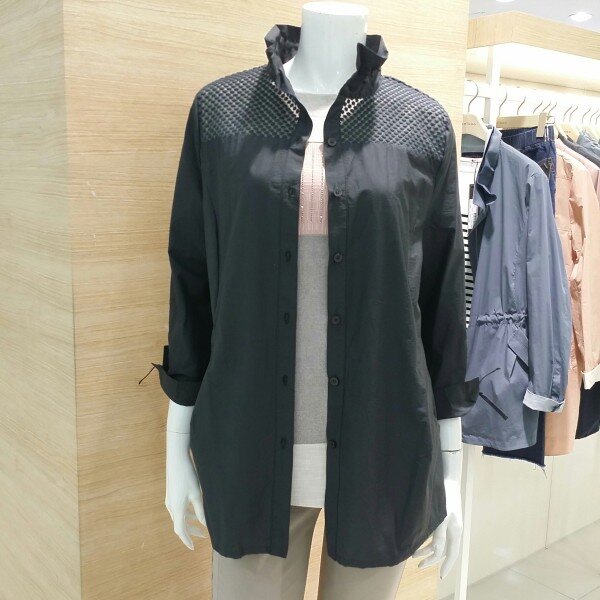 카라 와이어 포인트를 준 오픈식 셔츠블라우스 입니다소매부분도 리본 장식으로 여성스러워보이며 가벼운소재 사용으로 착용감이 좋고 여유감있어요
