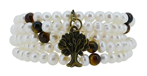 -. Feature : Long 5 Times Wrap Around Bracelet Kit, Made from Freshwater Cultured Pearls, Simulated Tiger Eye Accent Beads, and Metal Memory Wire; / Great and One of the Most Popular Graduation, Anniversary, Thank You, Birthday, Last Minute, Get Well, Mother's Day, or Christmas Gifts for Women, Ladies, and Girls; / Handmade Real Freshwater Cultured Pearl Wrapped Bracelet with a Charm Pendant; / Removable Alloy Charm: Tree of Life, Om, Peace, Lotus Flower, Fleur de Lis, Anchor, Elephant, or Mom; Free Velvet Mandala Crafts Gift Bag; / Cultured Pearl Size: 6 to 7mm; Luster: Medium; Shape: Potato; One Size Fits Most;