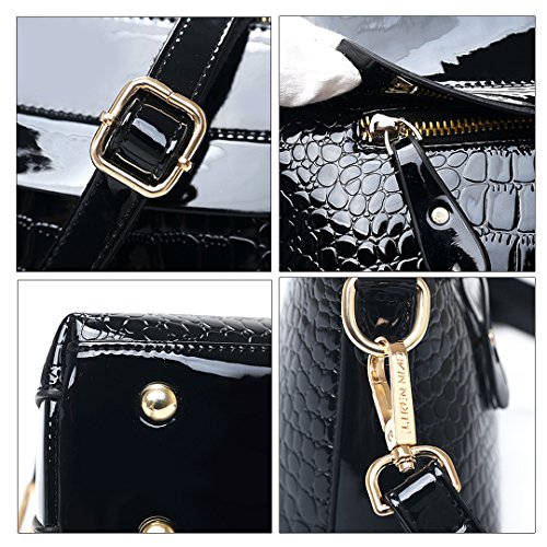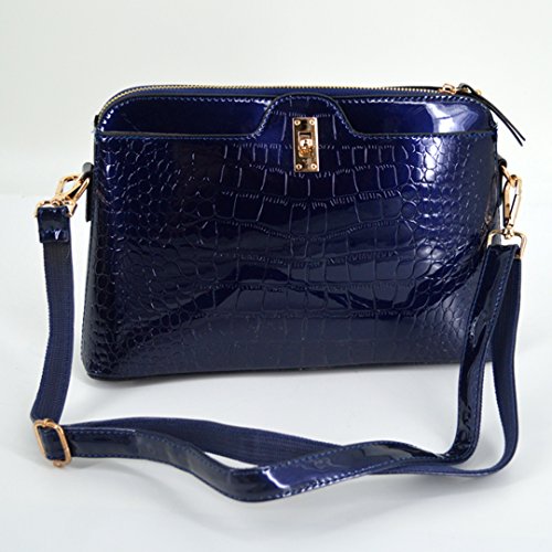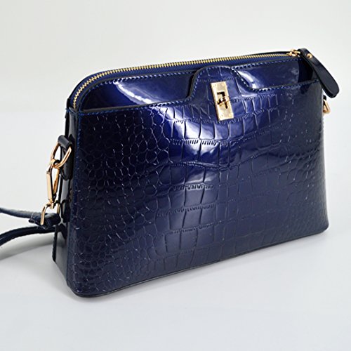 -. Feature : This crocodile grain pattern style new fashion handbag is manufactured with high quality PU leather, fully-lined fabric interior, and gorgeous metal accessories. Exquisite and sophisticated / Product Dimensions: 14 x 9 x 4 inches. Shipping weight: 1.3 LB. Available Color: Wine Red, Black, and Blue. Large capacity to hold your wallet, umbrella, cosmetics, glasses, smartphone, tissue, and other daily necessities for ensuring all articles in orderly and clean condition / Patent leather appearance looks so smooth, unique and stylish, glossy and durable; dresses up you charming and outstanding in the crowd.The product used exquisite hardware chain with belt strap, you can detachable the shoulder straps. They are so comfortable and durable, lightweight and generous / Full with classic details, elegant structure, roomy interior, a flat bottomed design, (Four inner pouches for cards, keys, cell phone, etc.) fully-lined fabric interior, open top pockets for simple organization / The bottom of the bag in particular the use of rivets fixed, so as to placed secure. Bag zipper sliders used simple step on the line design. Strong and durable, long service life.Compliments any style dress and shoes in matching color. With advantages of fashion, aesthetics and practicality, it's widely applied in dating, shopping, traveling or other occasions