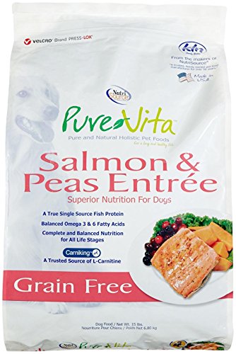 PureVita Grain Free Salmon Formula with Sweet Potatoes and Peas combines tasty Salmon with wholesome sweet potatoes and a select variety of berries, fruits and vegetables to deliver a healthy and delicious, easy to digest meal your dog will love. Carniking, a trusted source of L-Carnitine provides muscle and heart health for your dog. This true single source protein provides complete and balanced nutrition for all life stages of your dog. Pure Vita Grain Free Salmon Formula dog food is formulated to meet the nutritional levels established by the Association of American Feed Control Officials (AAFCO) Dog Food Nutrient Profiles for all life stages.Feature