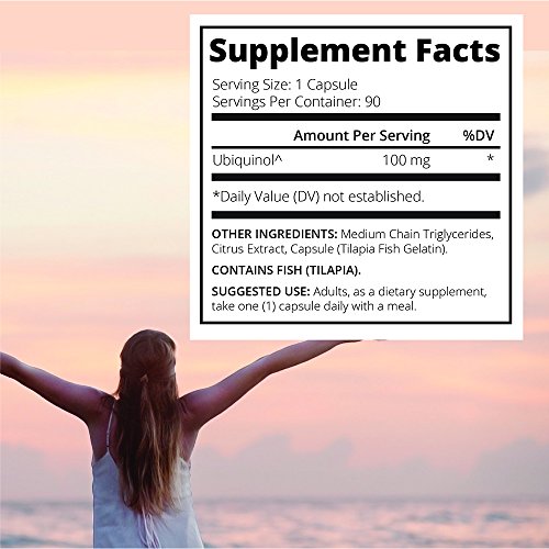 -. Feature : THE ACTIVE FORM OF COQ10: Ubiquinol is fat and water soluble providing higher absorption rates than regular CoQ10 to help your body fight against free radicals. Protect your cellular defense system with the most readily available form of this essential antioxidant / RELIEVE CHRONIC MUSCLE PAIN: One of the sides effects of certain medicines for cholesterol is a depletion of CoQ10 from your body. This can lead to chronic muscle pain. If you take any cholesterol medicine it is vital you replenish your CoQ10 levels* / FIGHT AGAINST AGING: After the age of 30, our body's ability to naturally produce CoQ10 begins to decline. Ubiquinol supplementation assists the body with maintaining optimum functionality such as heart and cardiovascular health, blood pressure levels and supporting the immune system* / NATURAL ENERGY BOOSTER: Get higher long term energy levels without having to rely on caffeine or other stimulants. Ubiquinol increases mitochondrial function which is at the heart of your body's natural energy levels.* No more 5PM slumps or slishness / NON-GMO, GLUTEN FREE, & ECO-FRIENDLY - When you look around at other brands, you'll quickly notice that not all supplements are created equal. Some are not manufactured in gluten free facilities and others don't say whether they use genetically engineered ingredients. We are clear about both: NO GMOs and GLUTEN FREE.
