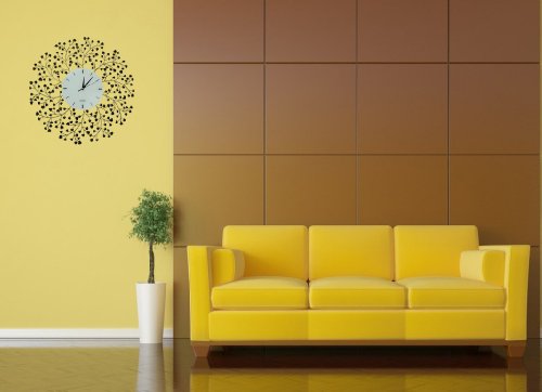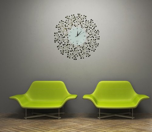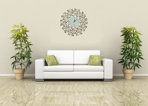 - Feature : Decorative metal wall clock diameter 24.50" and glass dial 9.50" is easy to view from a distance. / Silent Non-ticking, high quality quartz battery operated movement. / Aprox weight 5 lbs, Frame & flowers are made with gold & black metal which highlights any wall. Please beware of cheap plastic reproductions. / The design for this Decorative metal wall clock is inspired from blooms of spring flowers. / Requires one AA battery (not included).
