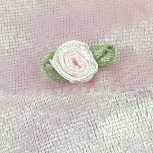 Pink Velour Leotard with Light Pink Satin Roses with Pale Green Leaves. Sheer Organza Sleeve Caps.