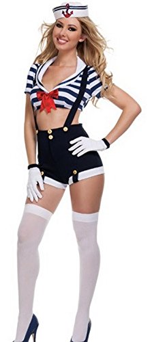 -. Brand : Moonie -. Color : Picture Color -. Department : womens -. Feature : Including: Hat, Top, Suspender Shorts, Glove / Materials: Micro Fiber (Milk Silk) / Comfortable to touch and wear. / Anyone who wears it will be extraordinarily sexy and enticing. / Note: please check the Size Chart in the pictures or description before you order. -. ProductGroup : Apparel -. ProductTypeName : ADULT_COSTUME -. Title : Moonie Four-piece Crop Top and Suspender Shorts Marine Navy Costumes Outfits