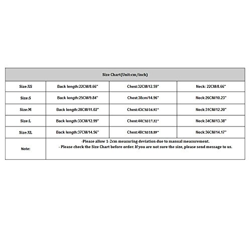 -. Feature : Material:Cotton,super soft and breathable,more comprehensive protection for your cute baby dog / TIPS: Measurement difference from 1-2cm, pls make sure to check your pets measurement really matches to this set.Thanks! / This item is in 100% high quality, new fashion. Soft material, comfy and easy to wear. Attractive and reasonable price. Very pretty for your sweetie pet! / Hand wash, and machine wash (wash separately from others clothes) / Perfect for every day wear, sleep time and photos. Size Guide: Size:XS Back length:22CM/8.66" Chest:32CM/12.59" Neck: 22CM/8.66" Size:S Back length:25CM/9.84" Chest:38cm/14.96" Neck:26CM/10.23" Size:M Back length:28CM/11.02" Chest:43CM/16.92" Neck:31CM/12.20" Size:L Back length:33CM/12.99" Chest:44CM/17.32" Neck:34CM/13.38" Size:XL Back length:37CM/14.56" Chest:48CM/18.89" Neck:36CM/14.17"