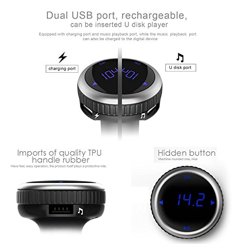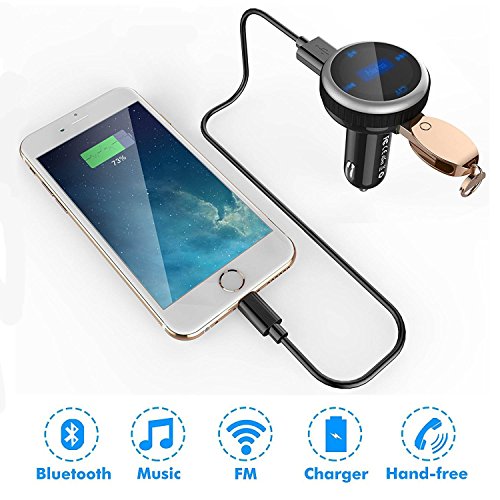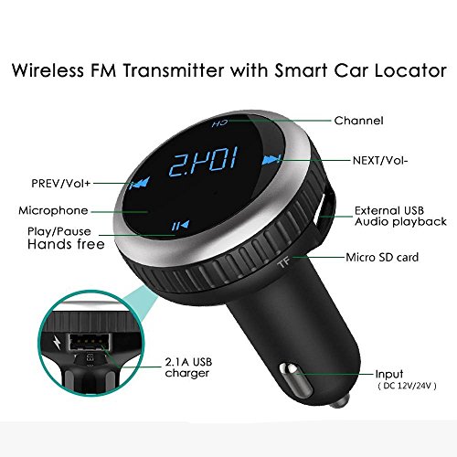 BLUETOOTH FM TRANSMITTER BROAD COMPATIBILITY:wireless in-car FM Transmitter works with most Bluetooth enabled devices, such as iPhone, Samsung, HTC, LG, Blackberry,Tablet and iPad etc.You can also insert U disk or micro SD card to play the MP3 file. FM 87.5-108.0MHz full channels covered.(The sound would be better if you tune the channel to 106.0~108.0)