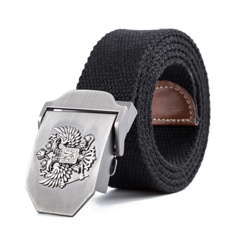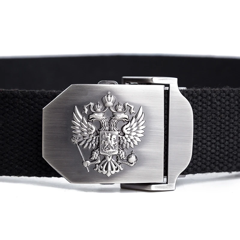 Belts Material: Canvas,Metal Color: 10 Colors Belt Size: 110cm And 130cm Buckle Pattern: Russian National Emblem Suitable For: Russia Patriot Product Properties: Luxury High Quality Tactical Belts Belt Length: Without Buckle