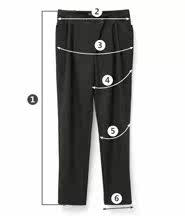| 尺码 | ①裤长 | ②腰围 | ③臀围 | ④大腿围 | ⑤膝围 | ⑥脚围 | ⑦前裆 | ⑧后裆 | ||