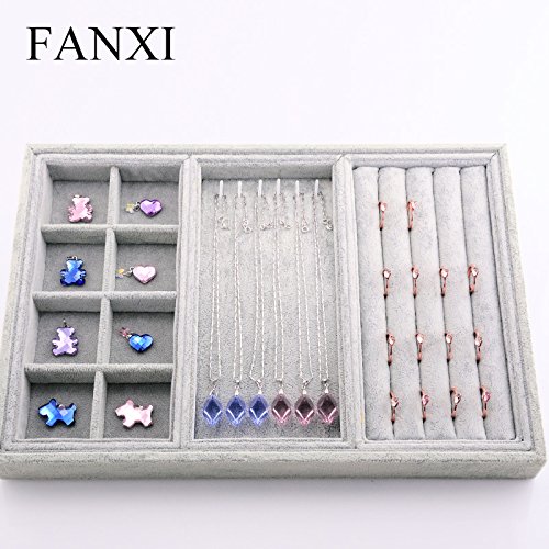 -. Feature : Ice velvet Stackable Modular Jewelry Organizer / NON-SCRATCH SURFACES: Luxuriously soft Veins liner material keeps your jewelry polished and heirlooms protected from scratches / UNIQUE MODULAR DESIGN: Interchangeable trays allow for a personalized layout. Organize your jewelry with dozens of combinations. Stack trays on top of each other additional room. / MULTI-PURPOSE: Use as a Showcase for your Jewelry Store, or display tray for a Premier in home Jewelry show