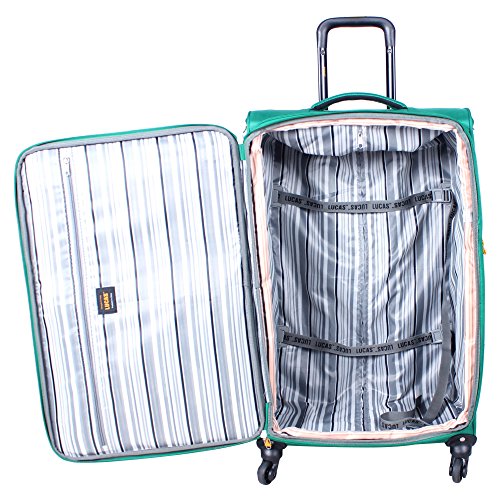 -. Brand : Lucas -. Department : unisex-adult -. Feature : Polyester / Push button telescopic handle system / 360 degree spinner wheels / Fully lined interior / Ultra lightweight construction -. Label : LUCAS -. Manufacturer : LUCAS -. PackageQuantity : 1 -. ProductGroup : Apparel -. ProductTypeName : LAGE -. Publisher : LUCAS -. Size : One Size -. Studio : LUCAS -. Title : LUCAS Hy Lite 24" Exp Lightweight Spinner