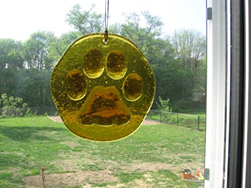 Paw Print Suncatcher Amber 100% Recycled Glass - Made in USA
