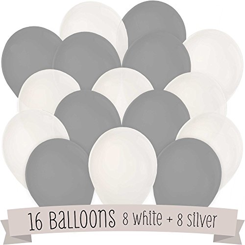 16 Pack of 11" Latex Balloons - 8 Silver and 8 White