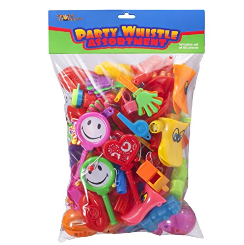 WHISTLE ASSORTMENT OF 60 VALUABLE PARTY FAVORS KID NOISE MAKERS FOR PARTY'S AND EVENTS SUCH AS BIRTHDAY PARTY, SCHOOL AND CLASSROOM REWARDS, CARNIVALS ETC. MADE AND SOLD EXCLUSIVELY BY SMART NOVELTY