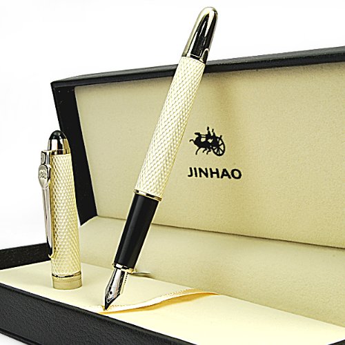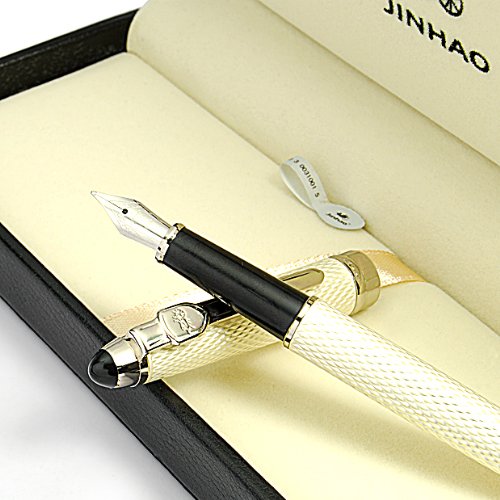 Chrome White Jinhao Fountain Pen F Tip Piston Style Filling