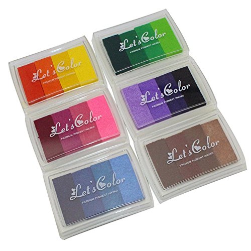 Kassagdin Classic Pigment Crafts Bright Rubber Stamp Ink Pads Set of 6 DIY Multicolor Craft 24 Colors