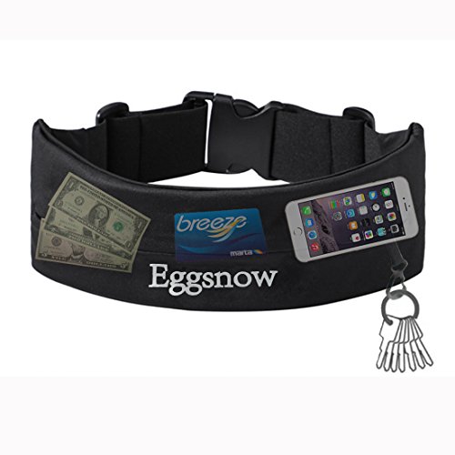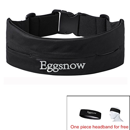 Eggsnow Adjustable Running Belt,Sports Waist Pouch/Pack for Running, Yoga and Travel - Black