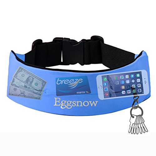 Eggsnow Adjustable Running Belt,Sports Waist Pouch/Pack for Running, Yoga and Travel - Blue