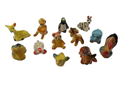 Collection Figurines Animals Painted Ceramic Miniatures Porcelain 12 PC