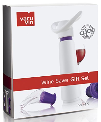 -. Feature : Collection of premium-quality Vacu Vin wine accessories / Contains: 1 x Wine Saver Concerto Pump, 2 x Wine Servers/Pourers and 2 x Vacuum Bottle Stoppers / Combination of gadgets will enhance the preparation, serving and preservation of wine / All items are highly robust and will tolerate regular and prolonged usage / Set is attractively packaged - ideal for gifts/presents