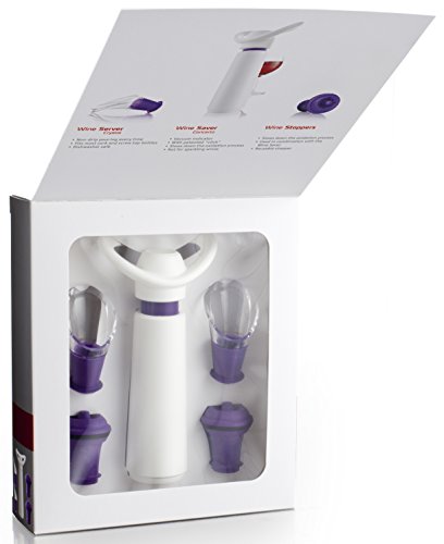 -. Title : Vacu Vin Wine Saver Gift Set - White / Purple