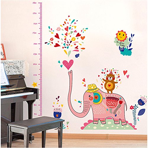 Kids height wall stickers,Cartoon Animals Elephant Spray Water Wall Stickers Height Chart Removable Wall Decor Decal Growth Chart for Kids Bedroom Nursery Room Decoration