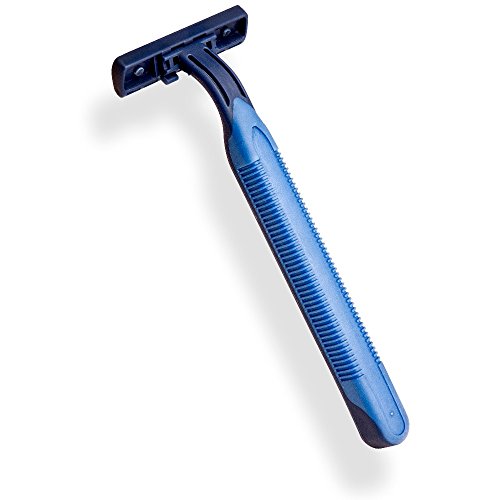 60 Pack Sensitive Skin Disposable Razors for Men, 2-Blades (Twin Blades), (60 Razors) with Moisturizing Strip and Comfort Grip
