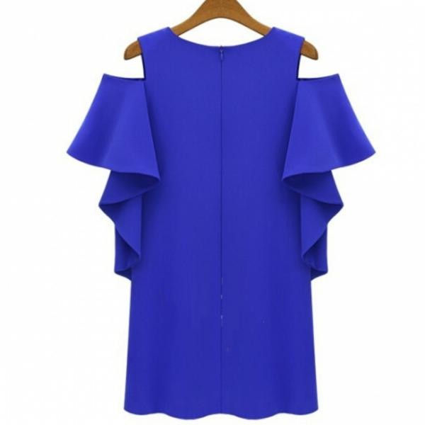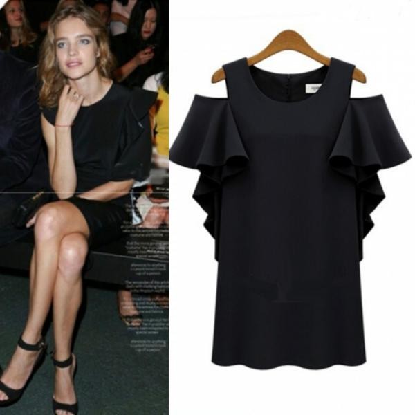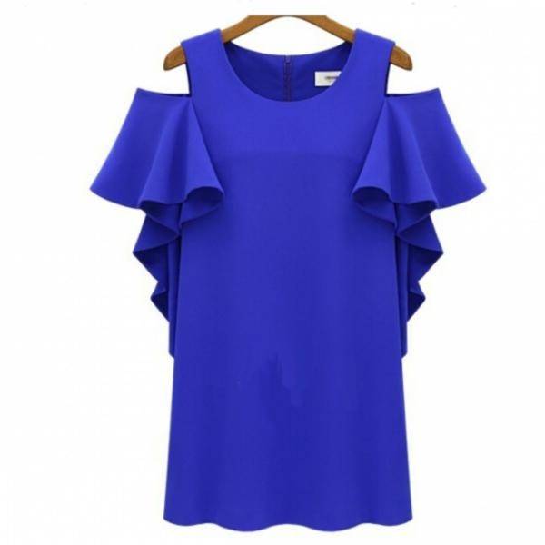 セクシー 肩開きフリル袖 エレガント Tシャツ チュニック 白