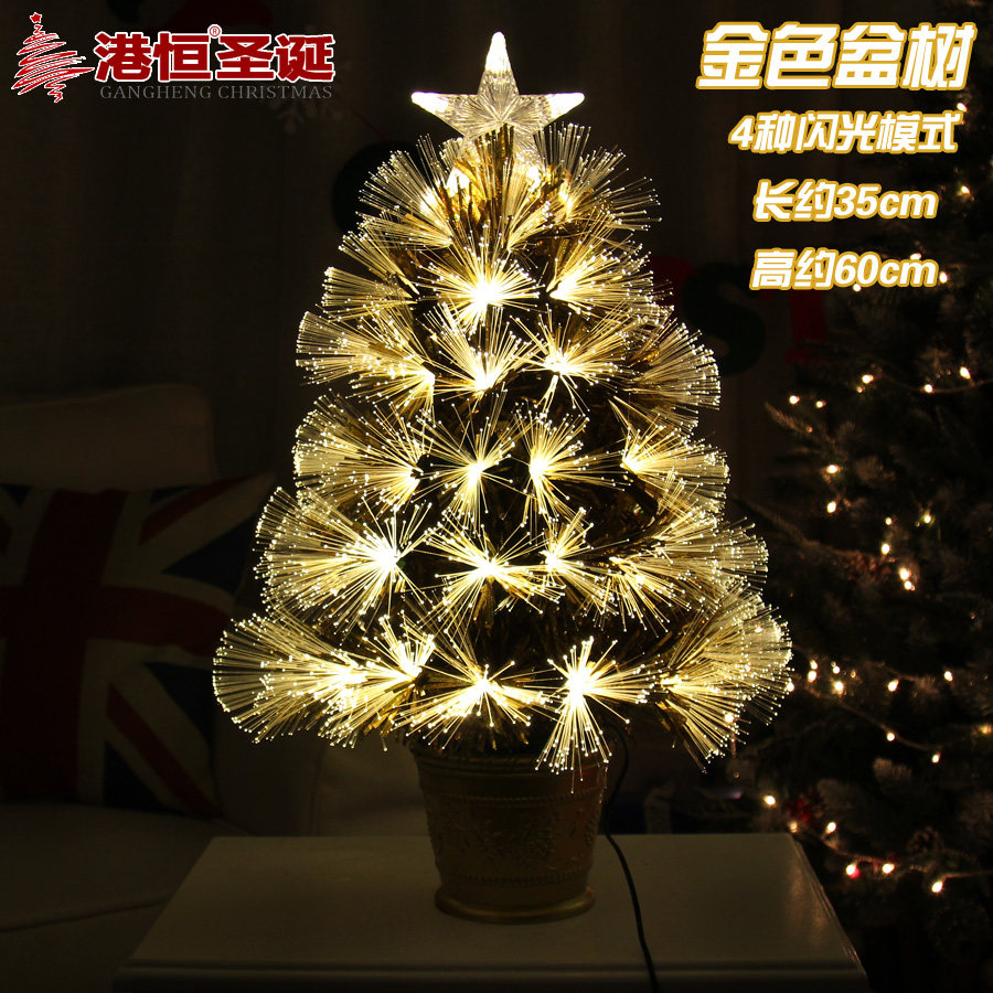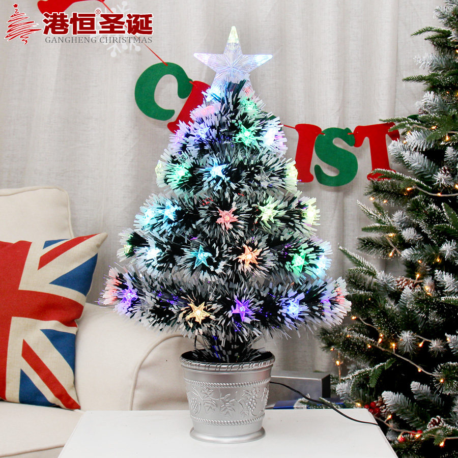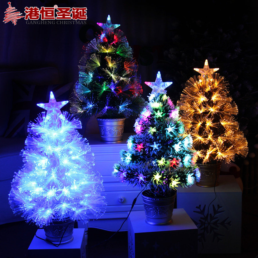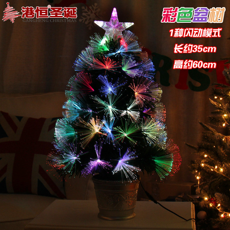 【Name】 Hong Kong Heng Christmas 60cm fiber tree colorful table decoration LED lights fiber Christmas tree flash colorful tree