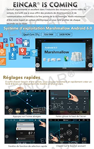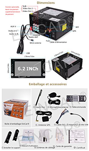 EinCar Eincar Quad-core Double din Car Stereo with Android 6.0 Marshmallow System in Dash 6.2inch Multi-touch Screen Car DVD Player support 3D GPS Navigation Map Bluetooth Wifi 4G/3G OBD