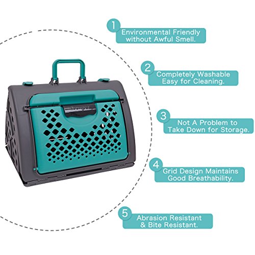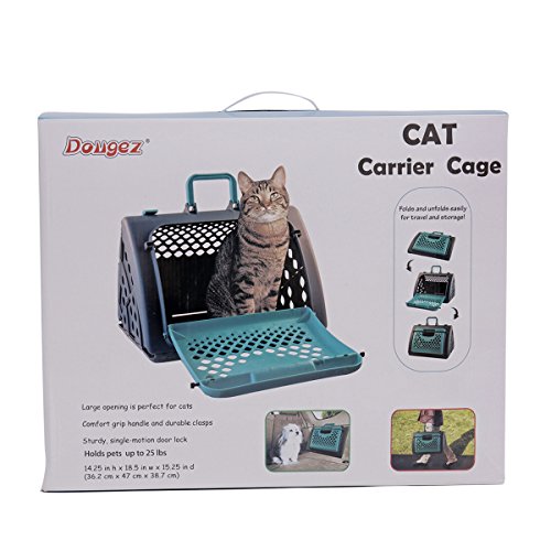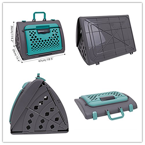 -. Feature : 【Large Opening Door】Large opening door is perfect for cats comfortably walk into, the carrier's door can be easily shut, keeping your pet safe, active and happy. / 【Easy to clean】The cat carrier is completely washable, you just need to wipe it down with a cloth and some cleaning agent. It is very easy and convenient. / 【Compact and Stable】The carrier folds up small and flat for storage, triangular shape encourages the cat to remain in the middle of the carrier, your pet can be well balanced in the middle and easily hold and walk with, it's virtually impossible for the cat to flip the carrier while it is inside. / 【Light and Breathability】Our carrier is made of high quality polypropylene, the material is superier than other products. It is lightweight and easy to carry; grid design maintains good breathability / 【Size】14.25*18.5*15.25inches (36.2*47*38.7cm), the carrier can hold pets up to 25lbs.