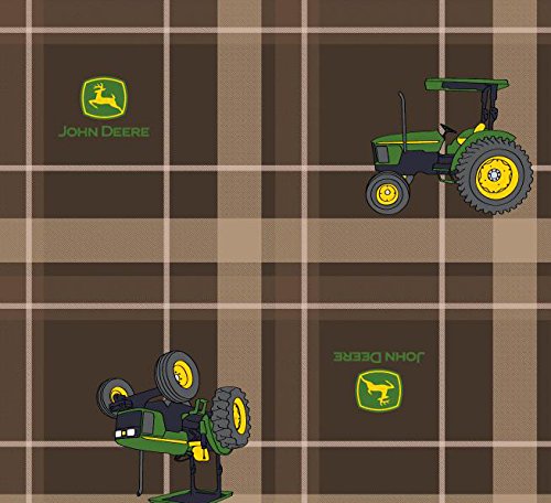 John Deere Tractor Plaid Cotton Fabric, Brown