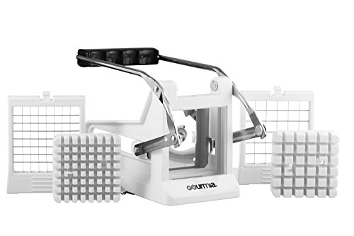 Restaurant-style and steak fries, now homemade! With the French Fry Cutter by Gourmia you can cook up some crispy, crunchy French fries without the tiresome knife work. This complete potato slicing system requires no elaborate preparation. With the pull of a handle, you're ready to fry or bake perfectly uniform potato strips for the entire family to enjoy. Beginner or pro chef, simply choose from two different blade styles to achieve their ideal thin or thick cut. Then install the plates, insert segments of potato, sweet potato, fruit, or veggies, and the grater delivers precision results every single time!