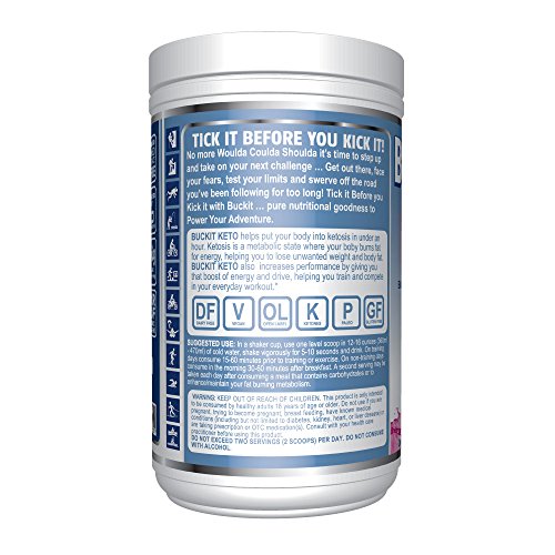 -. Binding : Health and Beauty -. Brand : Buckit -. EAN : 0711583543050 -. Feature : Raise Blood Ketone Levels, Boost Energy and Focus / 14.6g of GoBHB Patented Ketone Salts / 100% Open label, No Artificial Flavors, Sweeteners, or Colors / Gluten Free, Dairy Free, Sugar Free and Vegan / Made in the USA -. IsAdultProduct : 0 -. Label : Kick It Group -. LegalDisclaimer : These statements have not been evaluated by the Food and Drug Administration. This product is not intended to diagnose, treat, cure or prevent any disease. -. Manufacturer : Kick It Group -. MPN : 0711583543050 -. PackageQuantity : 1 -. PartNumber : 0711583543050 -. ProductGroup : Health and Beauty -. ProductTypeName : HEALTH_PERSONAL_CARE -. Publisher : Kick It Group -. Studio : Kick It Group -. Title : Buckit Keto Exogenous Ketones Supplement - BHB Salt Beta-Hydroxybutyrate Powder Designed for Ketosis to Burn Fat, Boost Energy and Ketogenic Diet Support - Raspberry Citrus Splash - 20 Servings -. UPC : 711583543050
