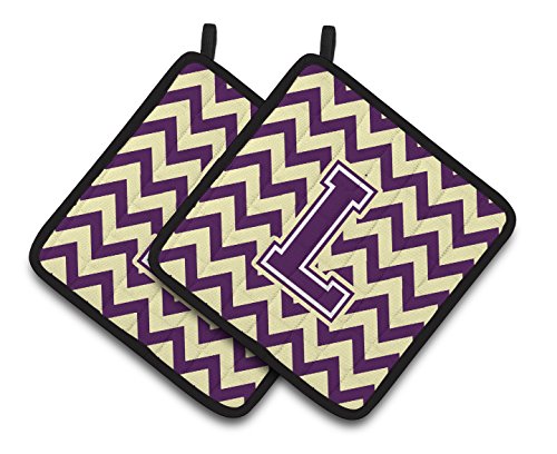 Caroline's Treasures Letter L Chevron Purple & Gold Pair of Pot Holders CJ1058-LPTHD, 7.5HX7.5W, Multicolor