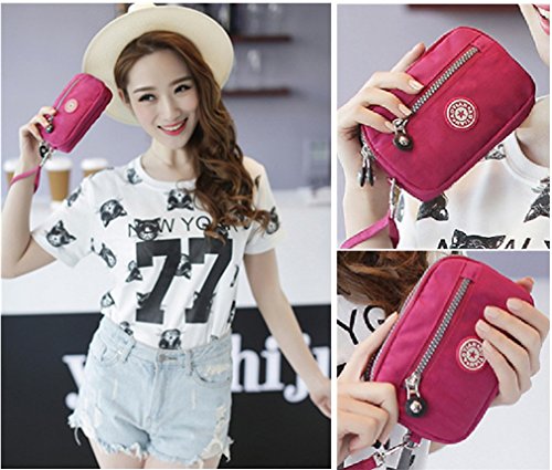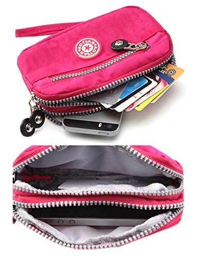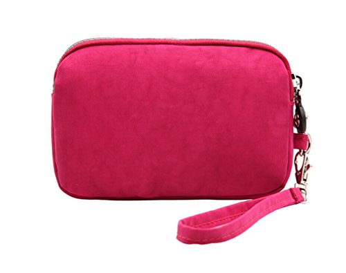 Product Description 1,Size:16x11x3cm/6.3x4.3x1.1inches 2,Hold cellphone such as iphone 6s/6,iphone SE,iphone 5/5s/5c,Samsung Galaxy S5/S4/S3/S2,not big than 5 inches 3,It has 2 layers,carrys daily stuffs such as cosmetics,cards,keys etc 4,Made of nylon fabric,lightweight,durable and washable;Zipper closure style 0