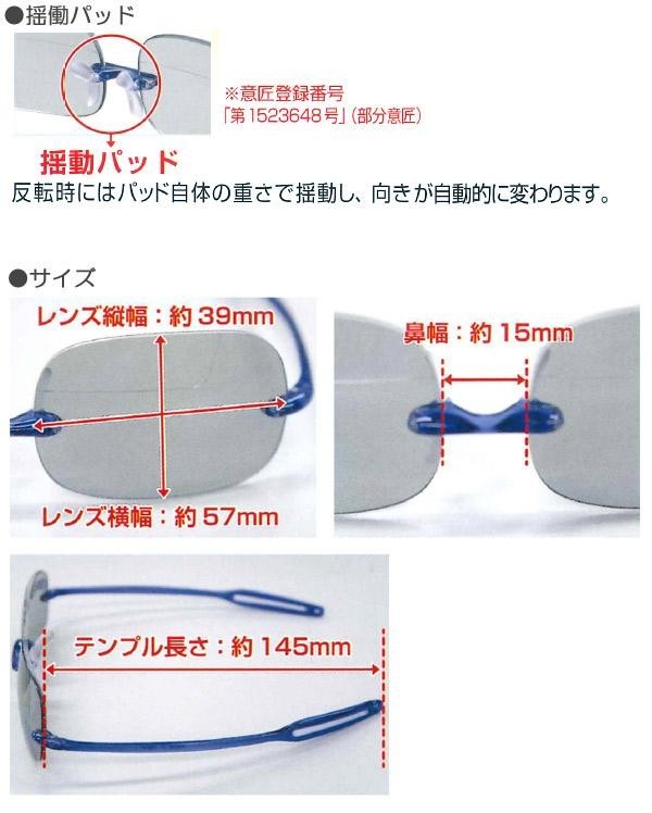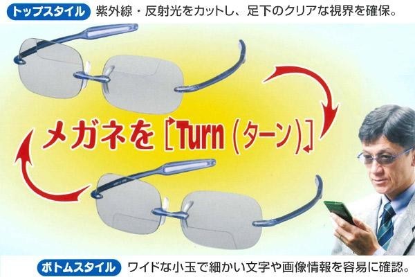 | メガネを上下に反転掛け替え可能な遠近両用&偏光サングラス!!1本のメガネでシーン・用途に応じた使い分けが可能です。テンプルエンドには滑り止めゴム、グラスチェーン取付穴付き!! |