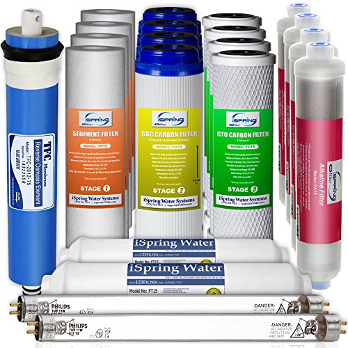 iSpring F21KU75 2-Year Replacement Filter Set for 7-Stage 75GPD UV Alkaline Reverse Osmosis Water Filter, Fits iSpring RCC1UPAK RCC7AKUV (21pcs 4SED 4GAC 4CTO 2T33 1MC7 4AK 2UVF)