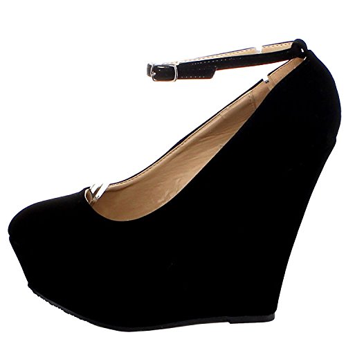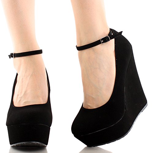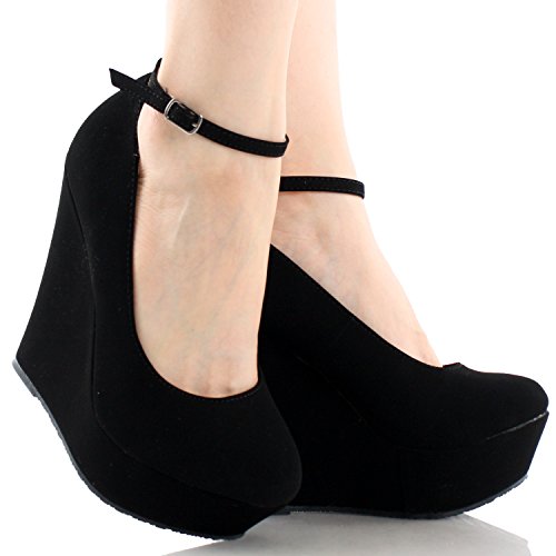 -. Feature : synthetic suede / Heel Height~5 / Platform Height~1.5 / Shaft Height~ / high-heels / round-toe / does-not-contain-animal-products , ankle-cuff / ankle-strap